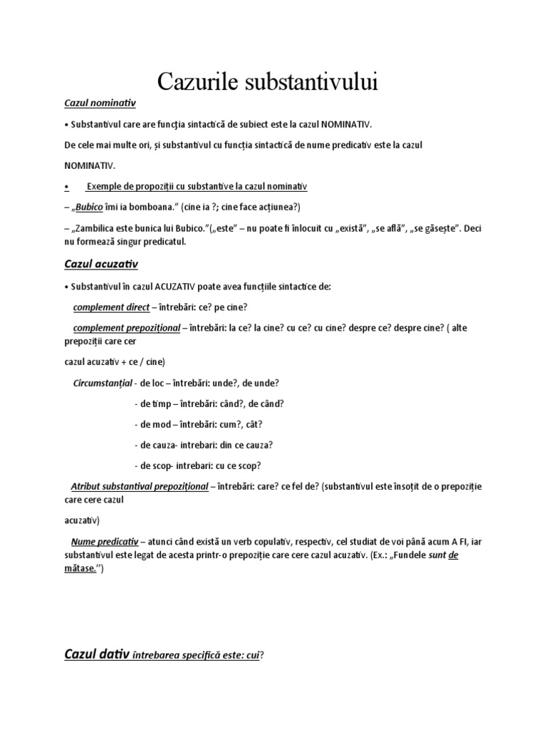 • Exemple de propoziții cu substantive la cazul nominativ
