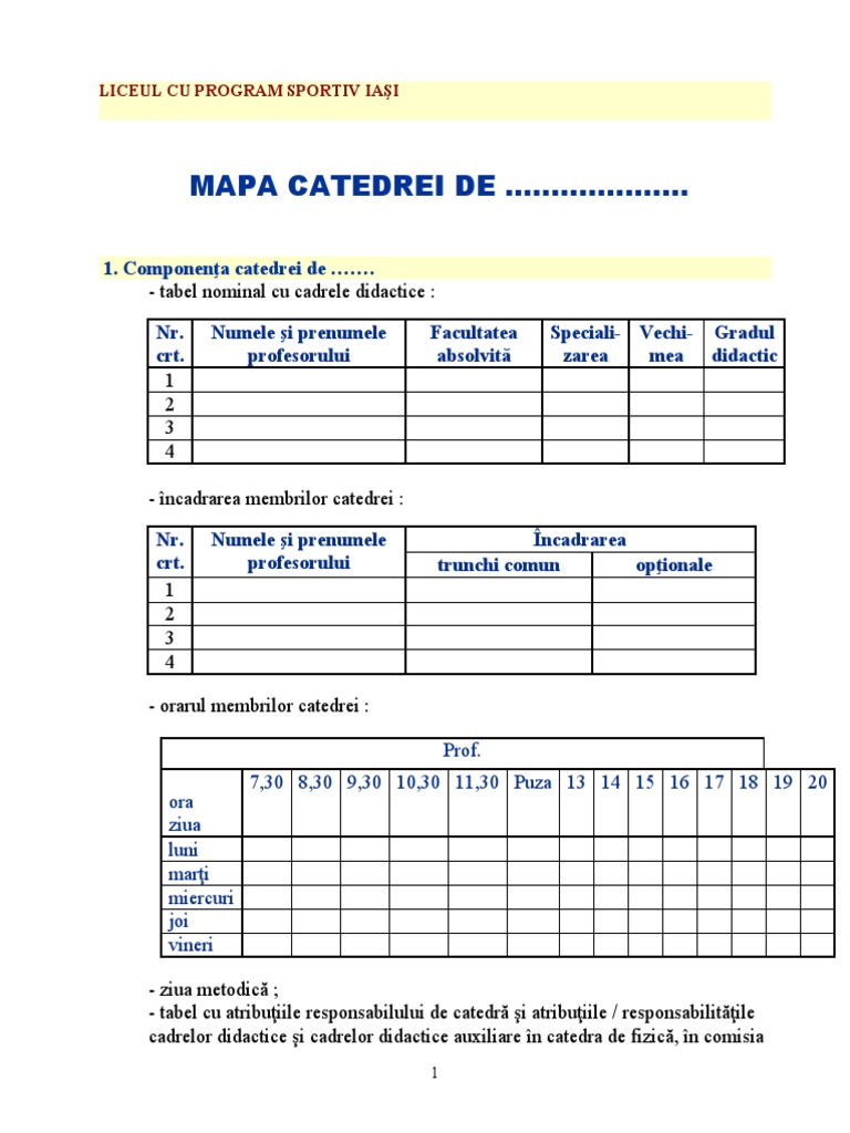 - planul managerial al catedrei de ........................ pe an şcolar/semestru: