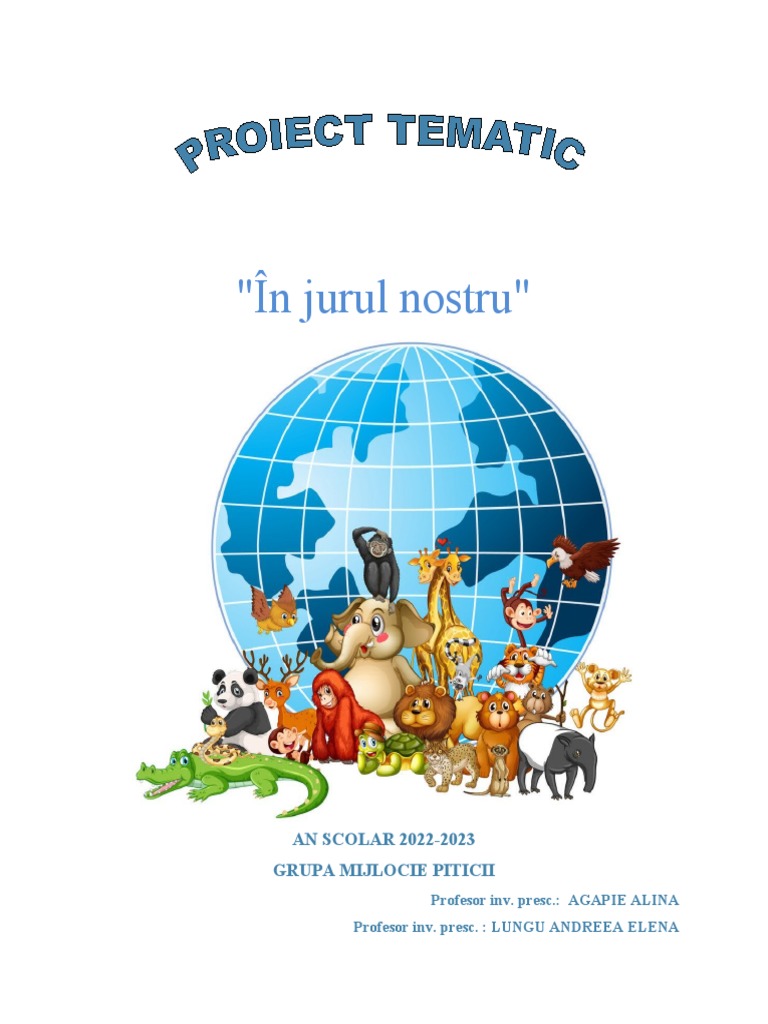 de 3 saptamani cu tema “În jurul nostru”. În cadrul proiectului vom discuta despre animale,