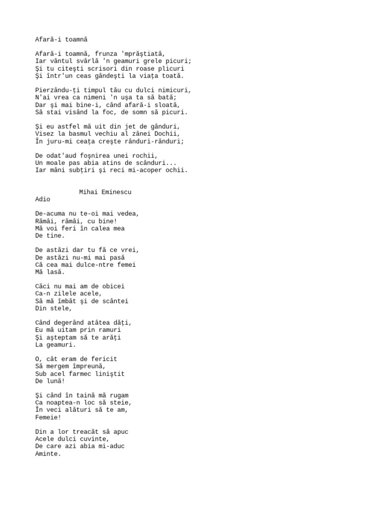 Afară-i toamnă, frunza 'mprăştiată,