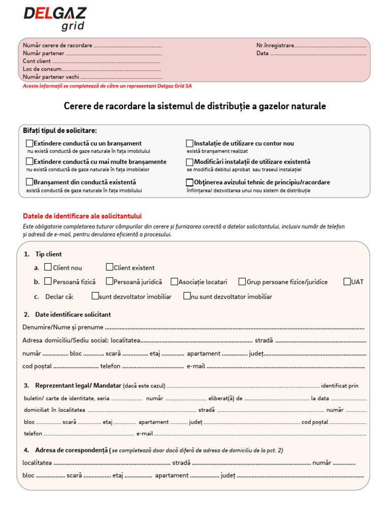 Cerere de racordare la sistemul de distribuție a gazelor naturale