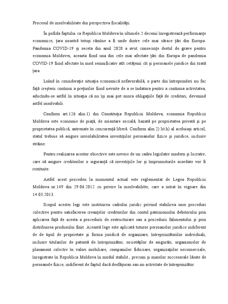 Moldova nr.149 din 29.06.2012 cu privire la insolvabilitte, care a intrat în vigoare din