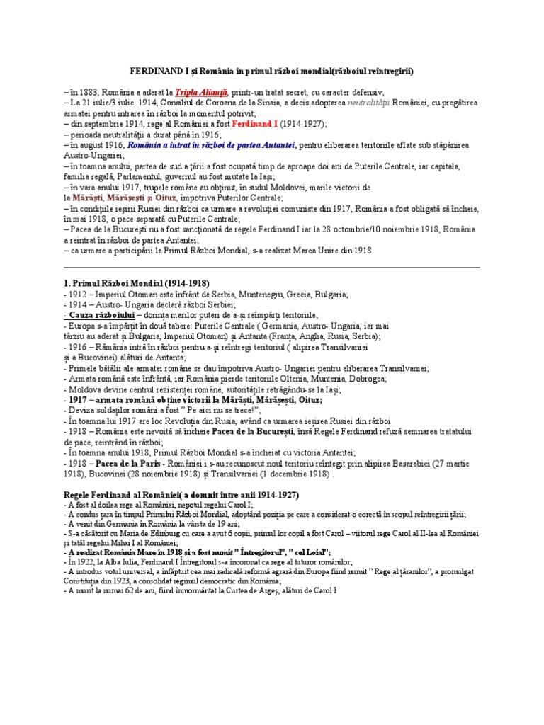 – din septembrie 1914, rege al României a fost Ferdinand I (1914-1927);