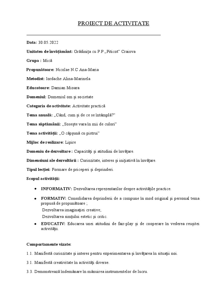PROIECT DE ACTIVITATE