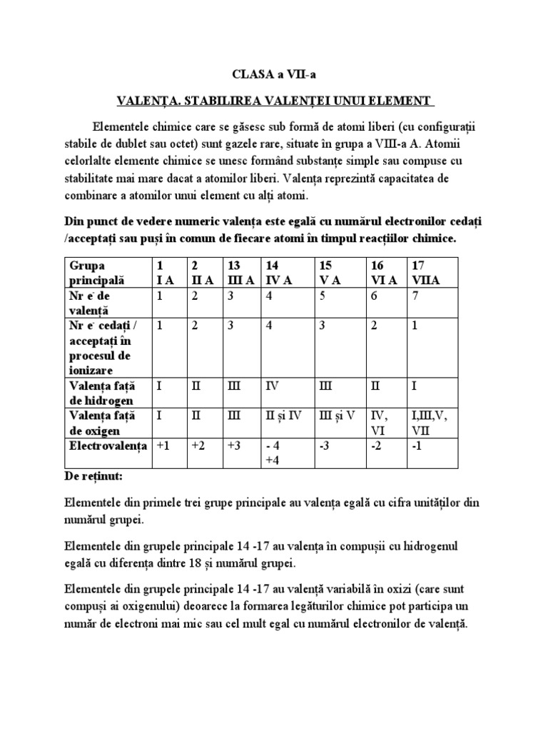 VALENȚA. STABILIREA VALENȚEI UNUI ELEMENT