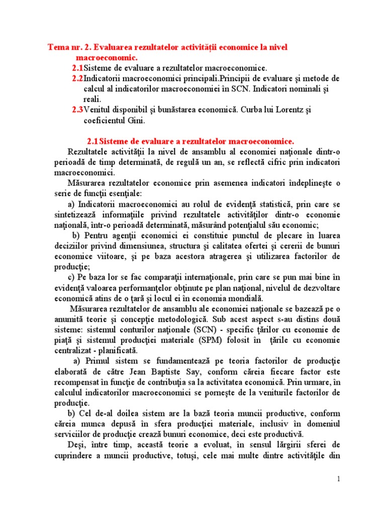 2.1Sisteme de evaluare a rezultatelor macroeconomice.