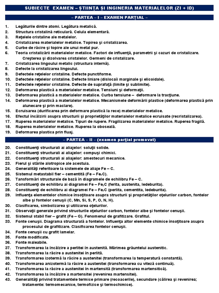 SUBIECTE EXAMEN – ŞTIINŢA ŞI INGINERIA MATERIALELOR (ZI + ID)