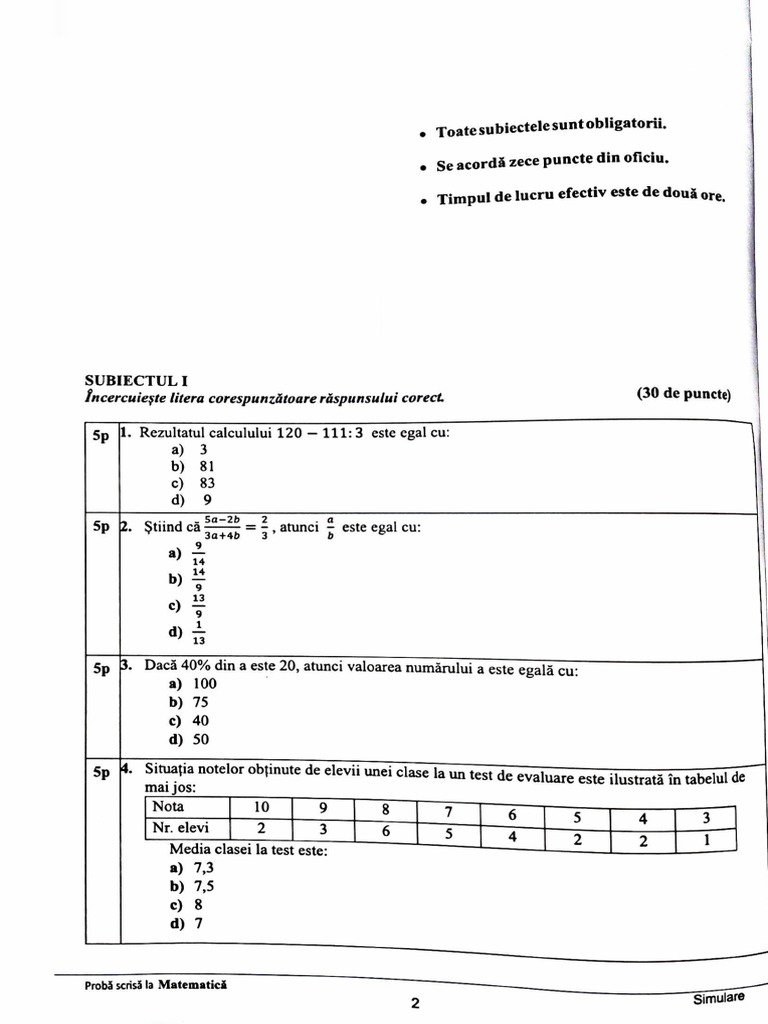 Proba scsi la Matematica i ‘Simulare(3p) b) Aflaji numerele a,b,c,