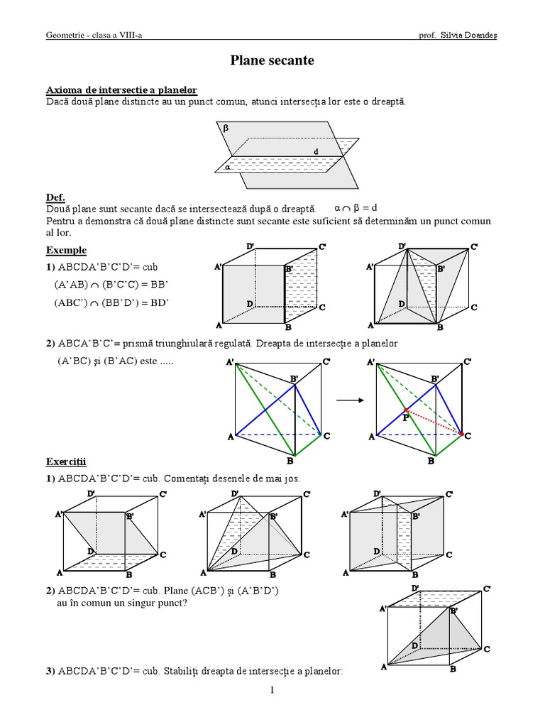 3) ABCDA’B’C’D’= cub. Stabiliți dreapta de intersecție a planelor: