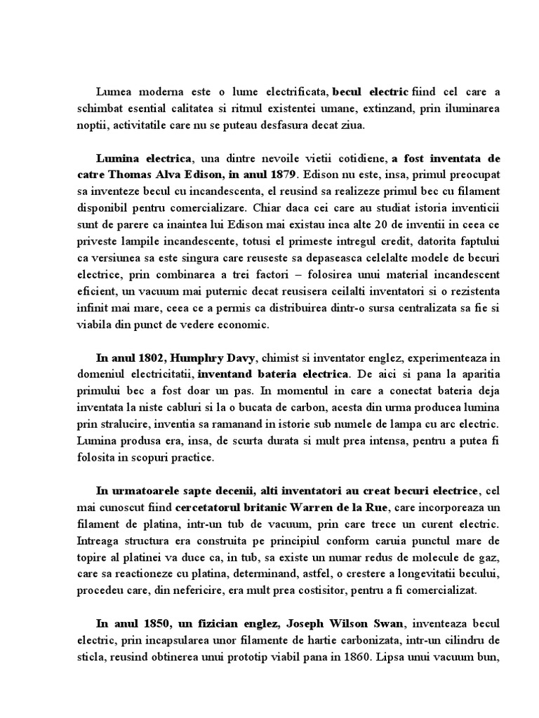 becul electric fiind cel care a
