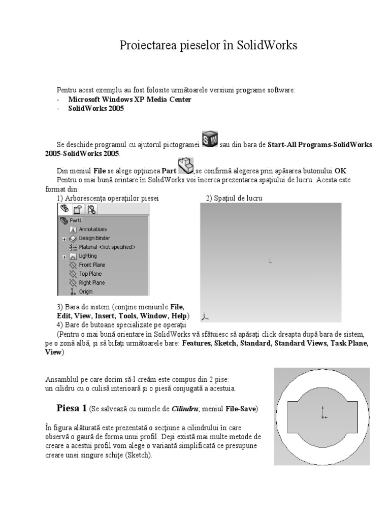 Proiectarea pieselor în SolidWorks