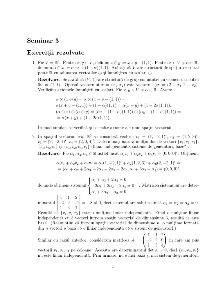 1. Fie V = R2 . Pentru x, y ∈ V , definim x ⊕ y := x + y − (1, 1). Pentru x ∈ V şi α ∈ R,