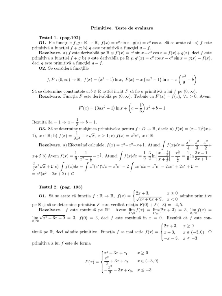 egale cu 0, deci f este continuă pe R. O primitivă a funcţiei f este forma