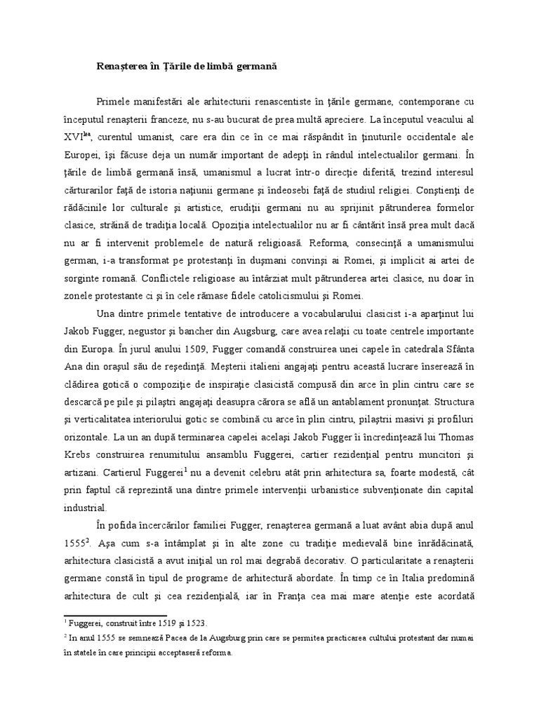 Primele manifestări ale arhitecturii renascentiste în ţările germane, contemporane cu