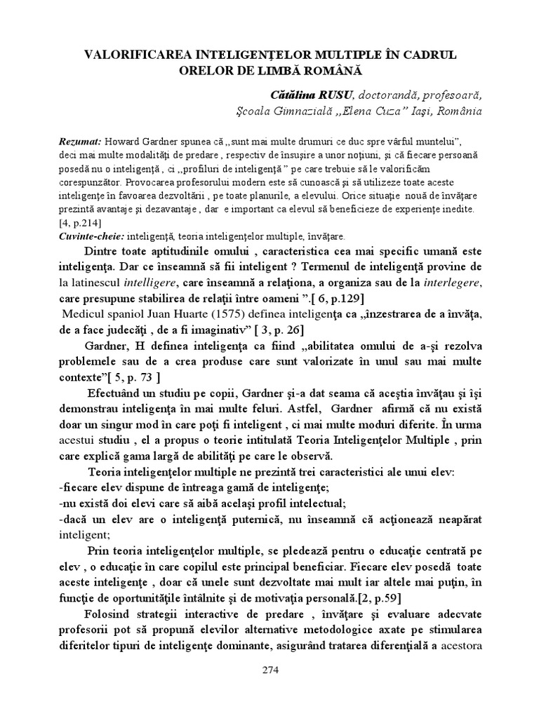 5. Howard, G –Inteligenţe multiple-Noi orizonturi ,ed. Sigma, 2006
