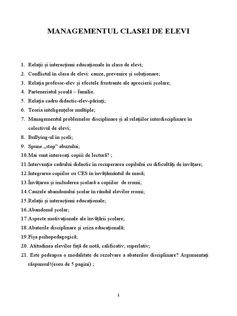 1. Relații și interacțiuni educaționale în clasa de elevi;