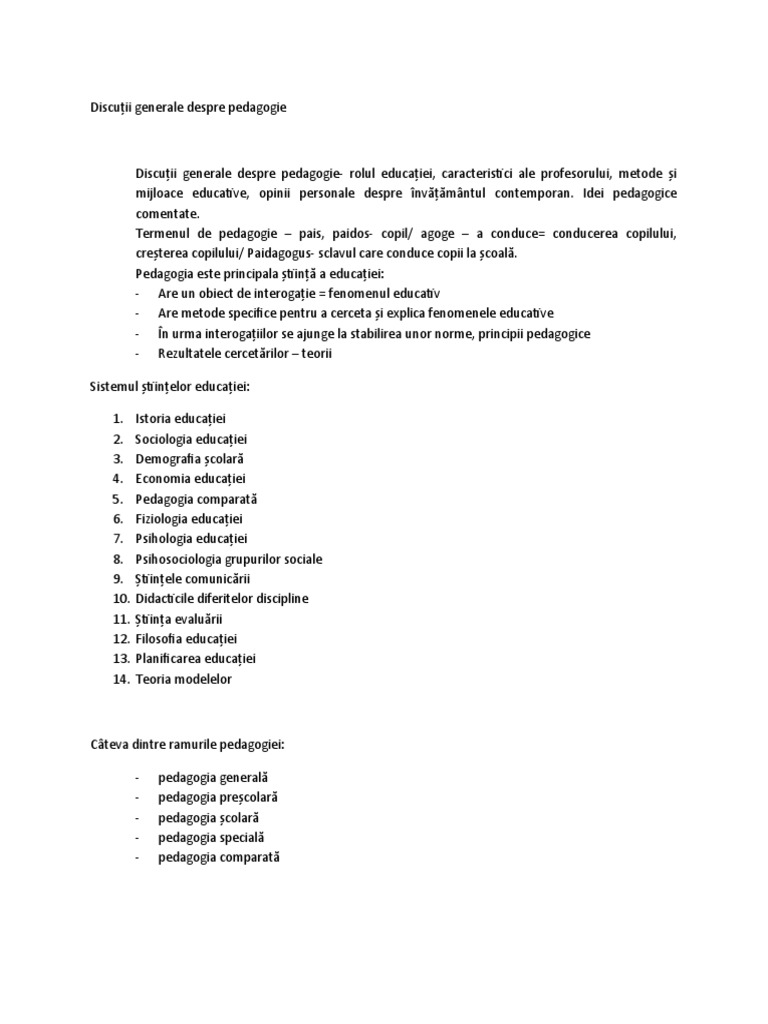 Discuții generale despre pedagogie