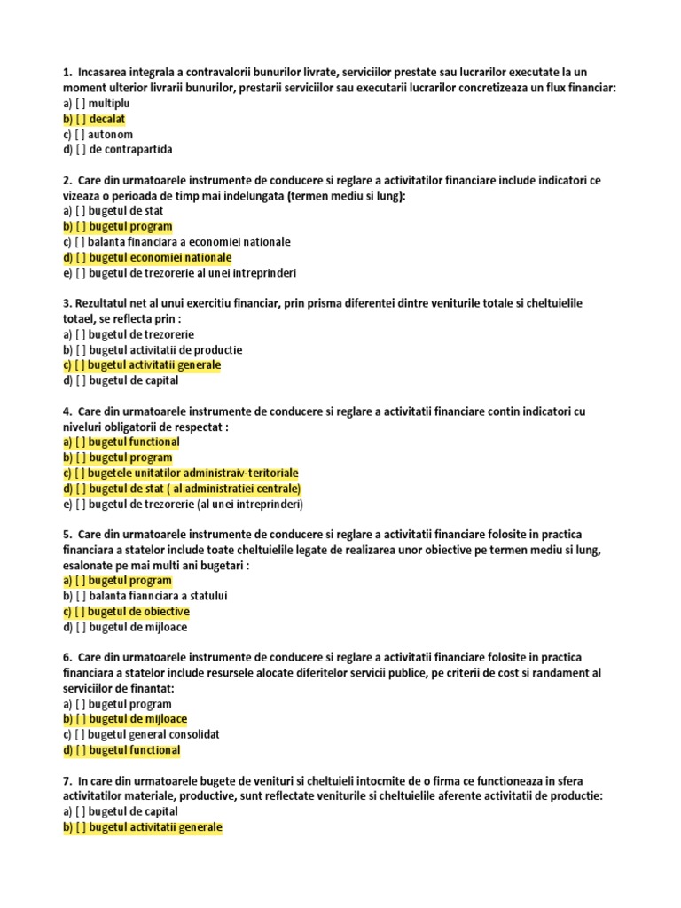 e) [ ] bugetul de trezorerie al unei intreprinderi