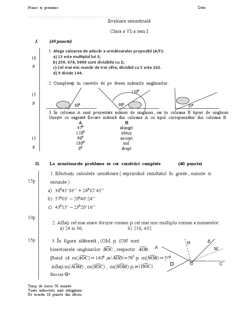 1. Efectuați calculele următoare ( exprimând rezultatul în grade , minute si
