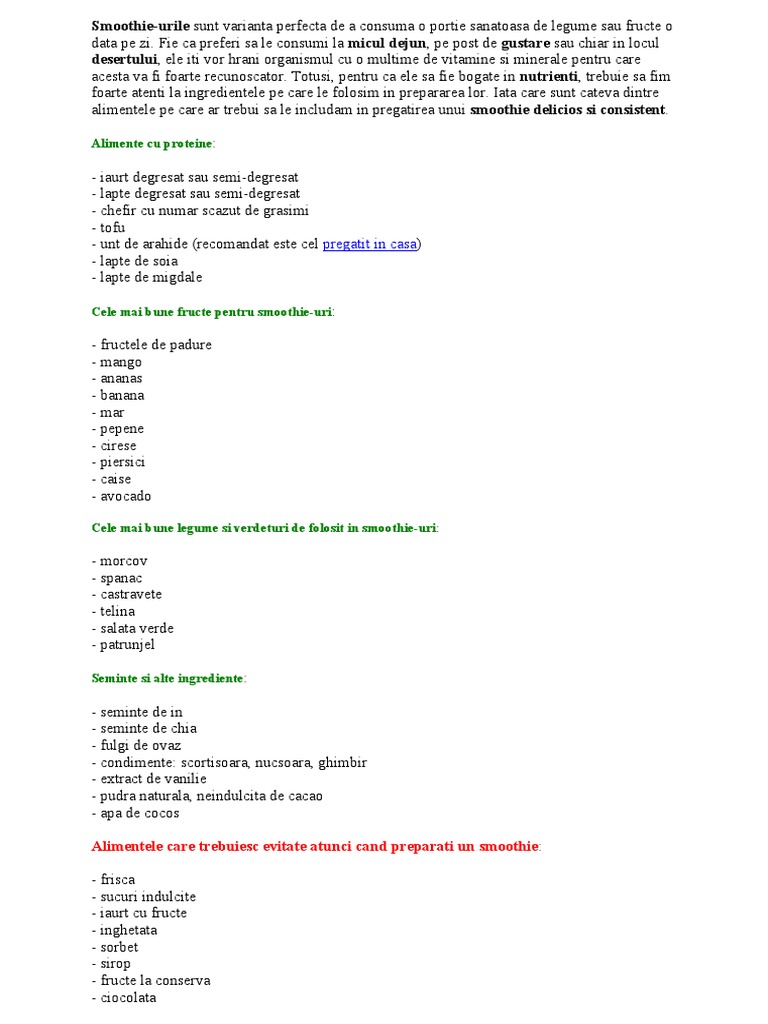 alimentele pe care ar trebui sa le includam in pregatirea unui smoothie delicios si consistent.
