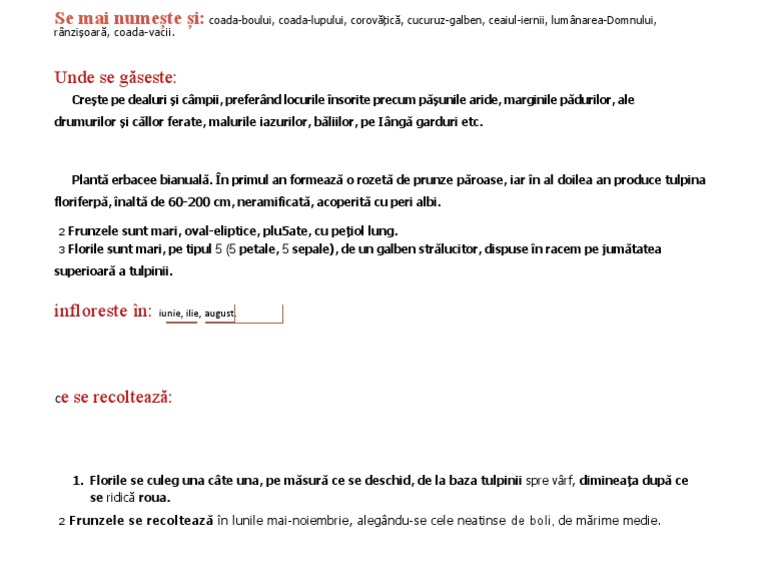 Se mai numește și: coada-boului, coada-lupului, corovăţică, cucuruz-galben, ceaiul-iernii, lumânarea-Domnului,
