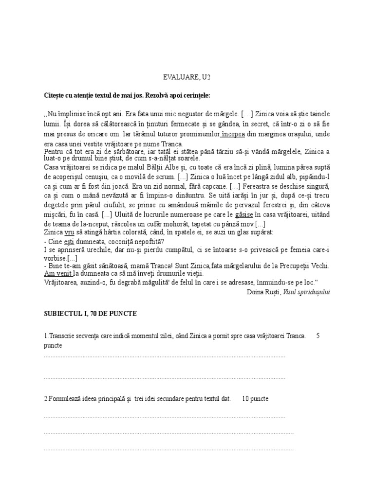 SUBIECTUL I, 70 DE PUNCTE