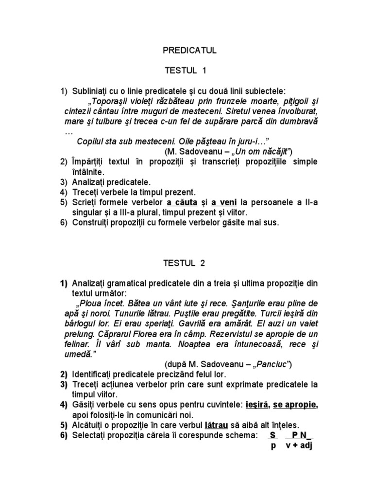 1) Subliniaţi cu o linie predicatele şi cu două linii subiectele: