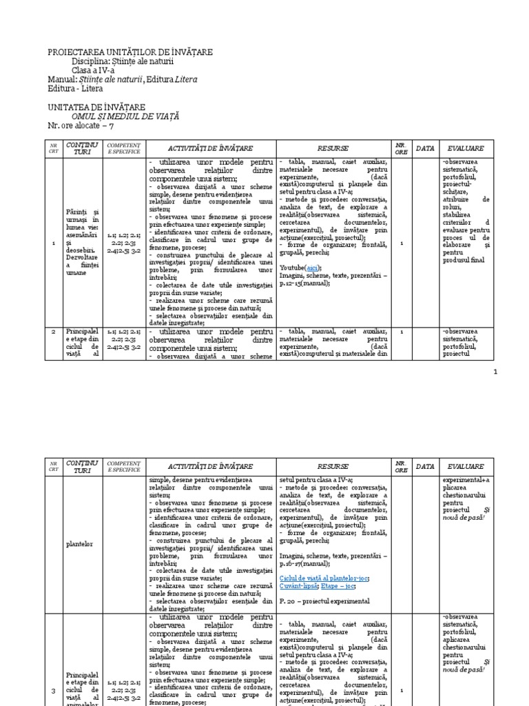 CR CONȚINUTURI ACTIVITĂȚI DE ÎNVĂȚARE RESURSE OR