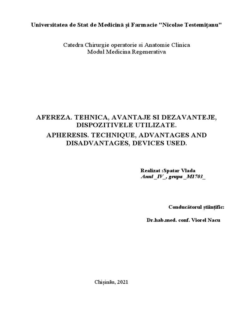a diferitor tipuri de afereza terapeutica. Efectul terapeutic al aferezei se datorează actiunii