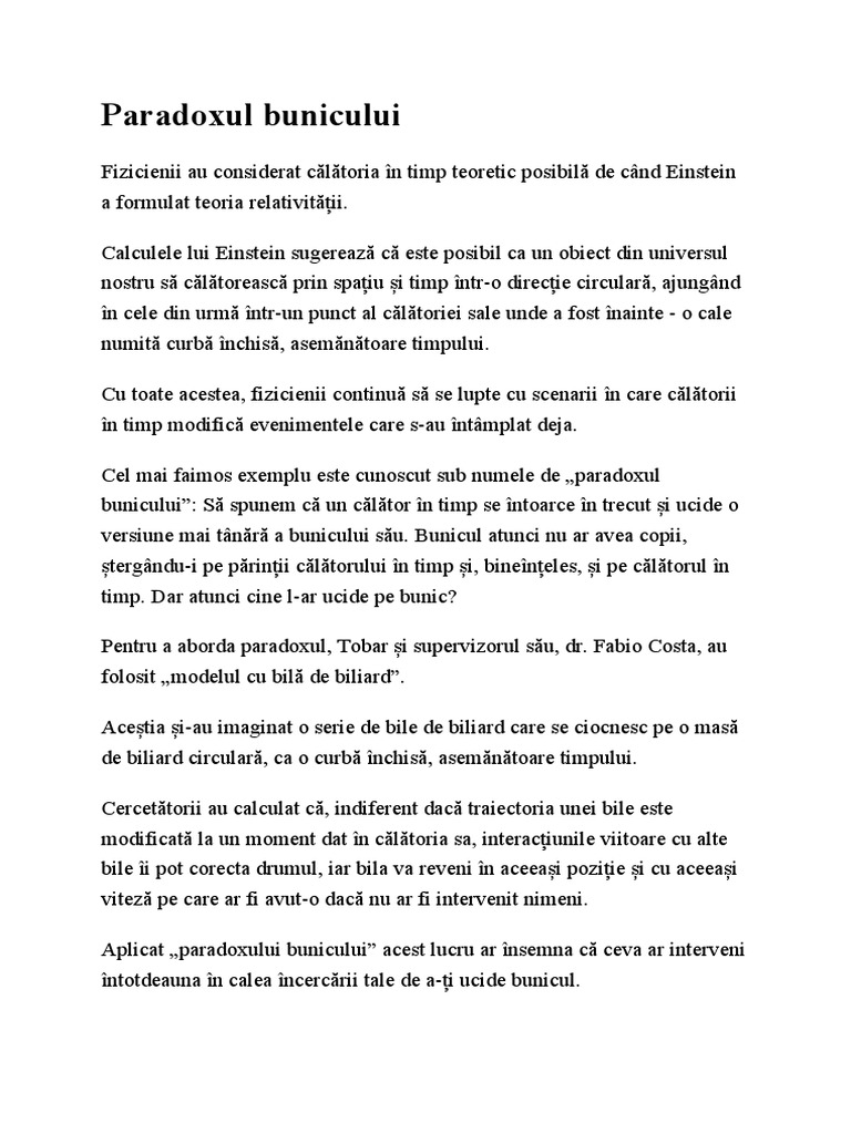 bunicului”: Să spunem că un călător în timp se întoarce în trecut și ucide o