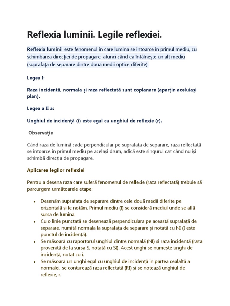 Reflexia luminii este fenomenul în care lumina se întoarce în primul mediu, cu