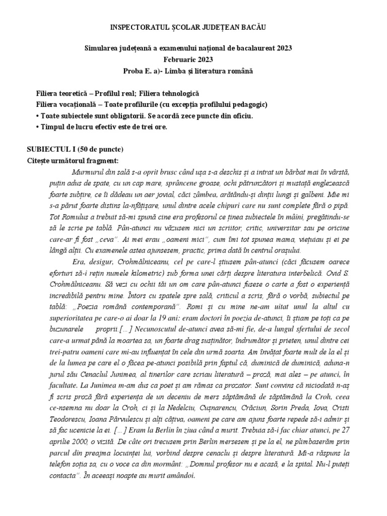 • Toate subiectele sunt obligatorii. Se acordă zece puncte din oficiu.