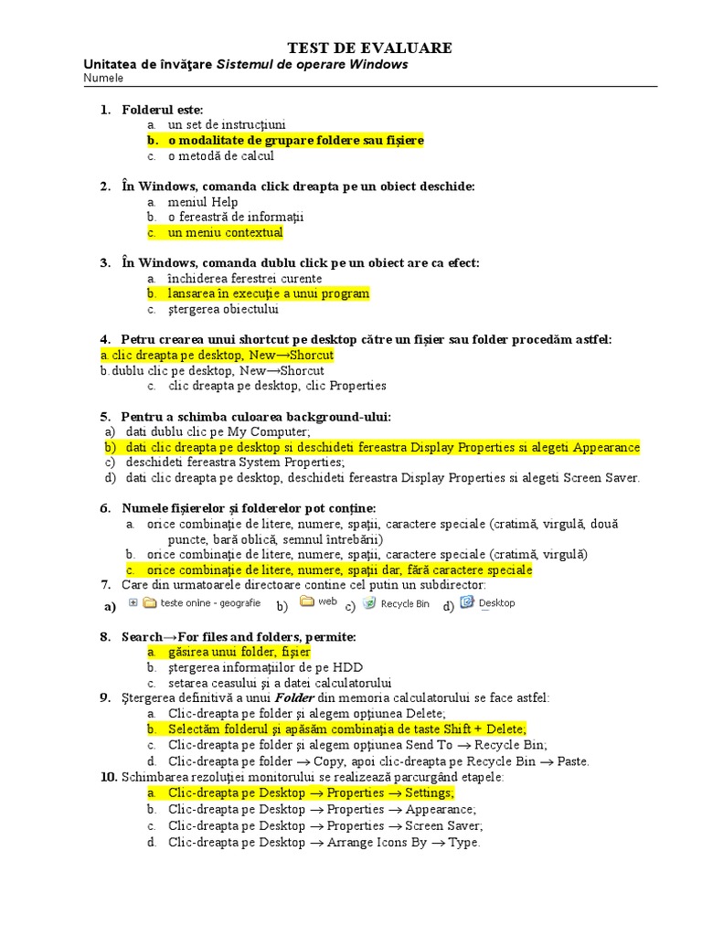9. Ştergerea definitivă a unui Folder din memoria calculatorului se face astfel: