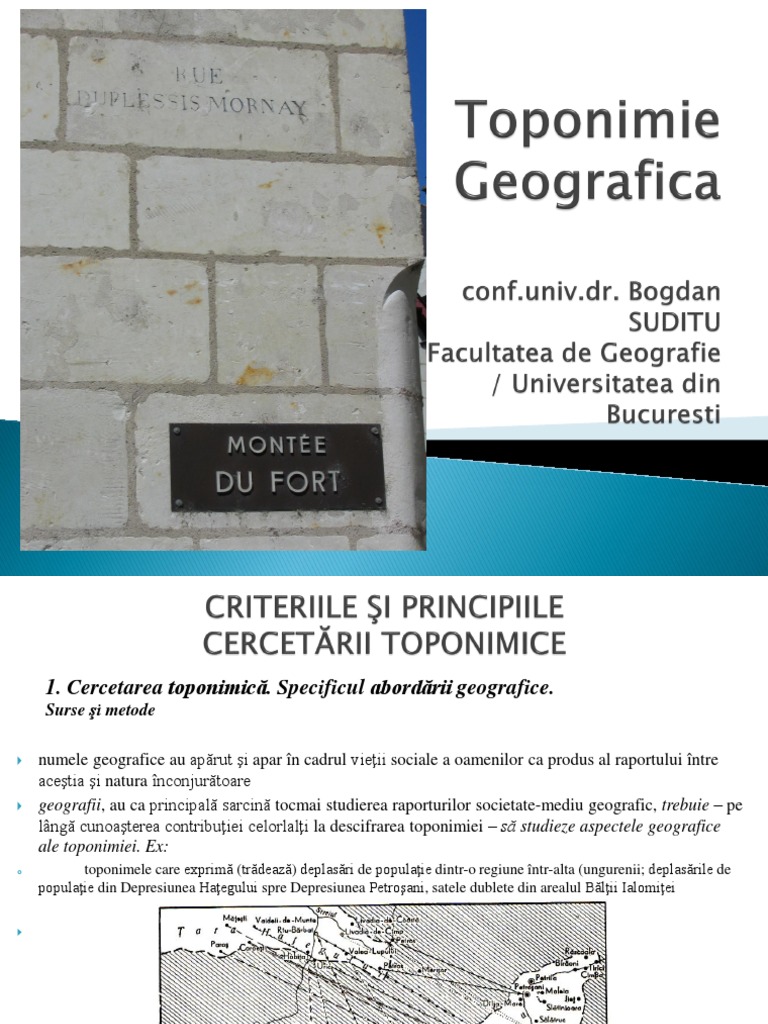 lângă cunoaşterea contribuţiei celorlalţi la descifrarea toponimiei – să studieze aspectele geografice