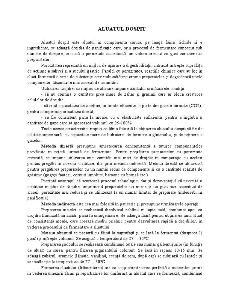 aluat formează o serie de substanţe care imbunătăţesc aroma preparatelor şi degradează unele