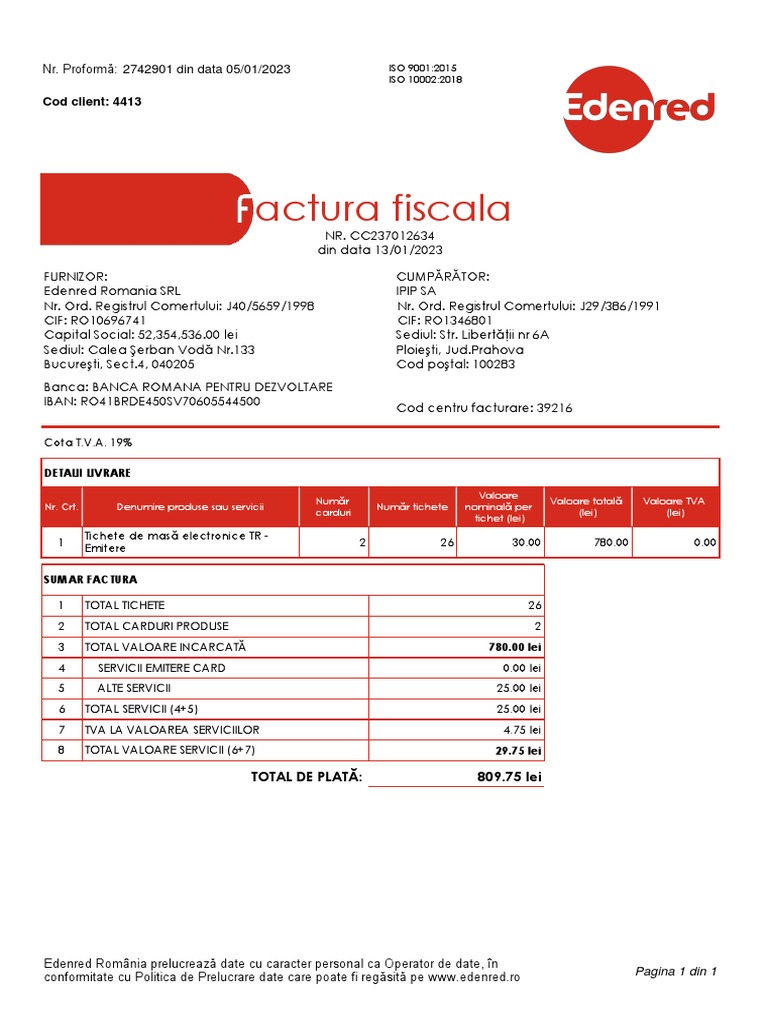 Edenred Romania SRL IPIP SA