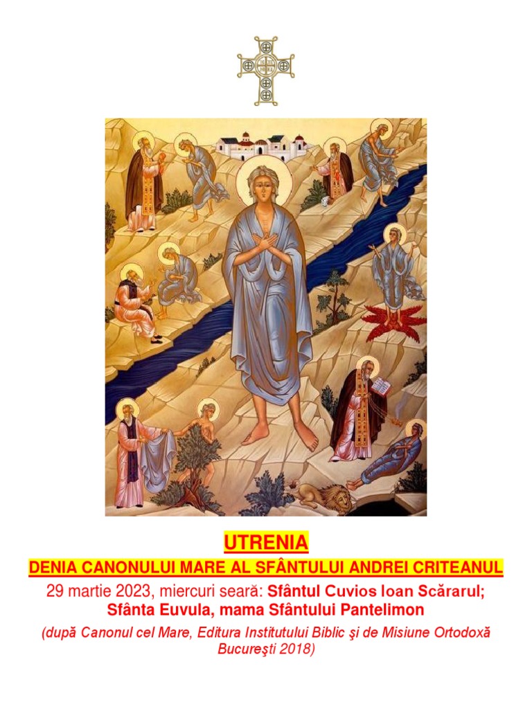 Utrenia: 29 Martie 2023, Miercuri Sear Ă: Sfântul Cuvios Ioan Scărarul