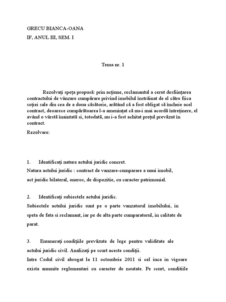 1. Identificați natura actului juridic concret.