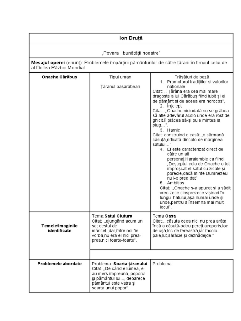 Mesajul operei (enunț): Problemele împărțirii pământurilor de către țărani în timpul celui de-