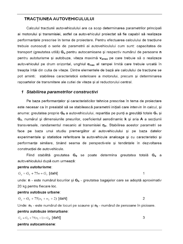 performantele prescrise in tema de proiectare. Pentru efectuarea calculului de tractiune