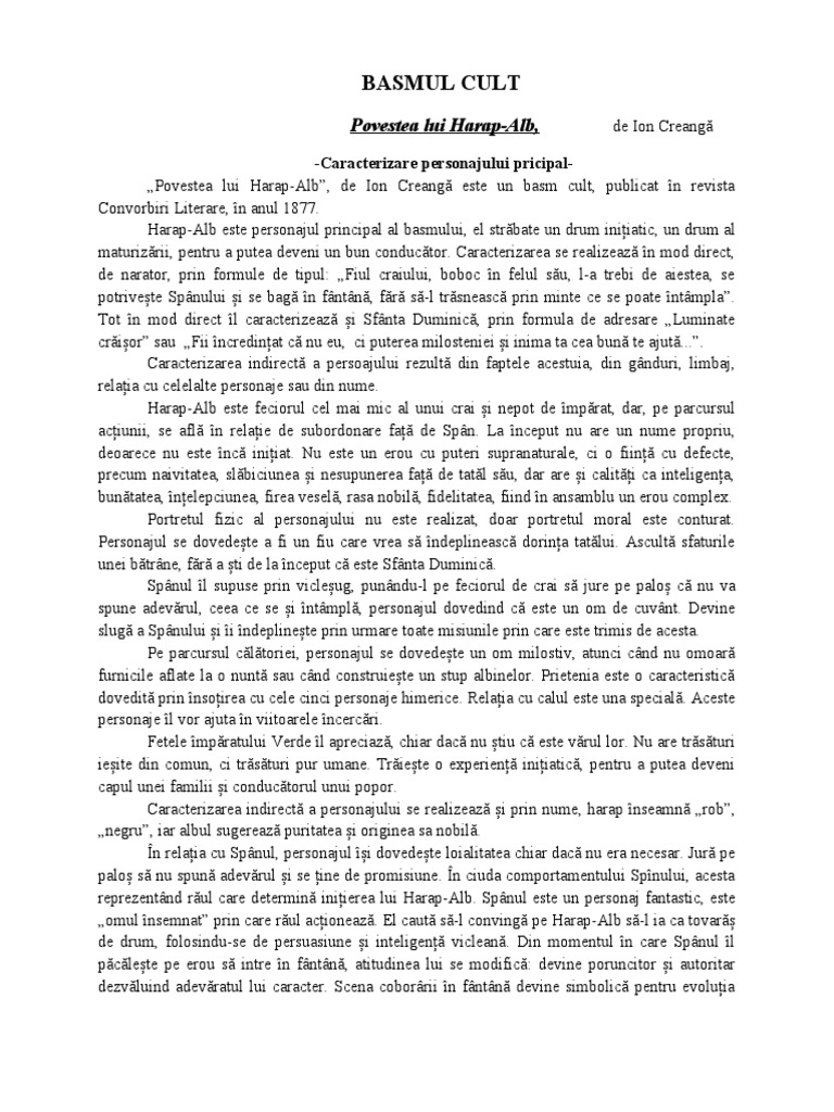 Harap-Alb este personajul principal al basmului, el străbate un drum inițiatic, un drum al
