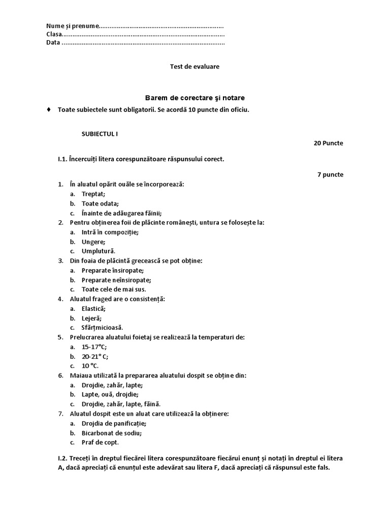 A, dacă apreciați că enunțul este adevărat sau litera F, dacă apreciați că răspunsul este fals.