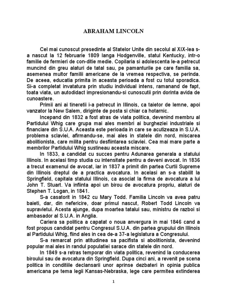Cel mai cunoscut presedinte al Statelor Unite din secolul al XIX-lea s-