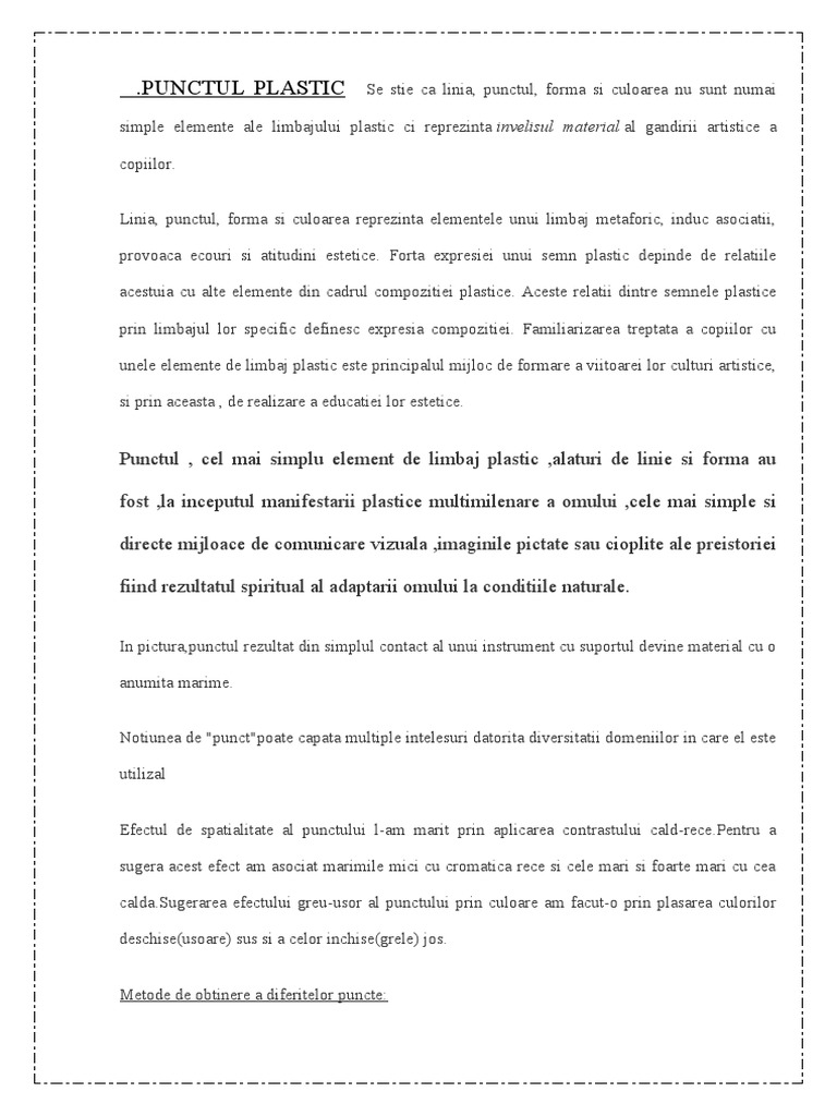 PUNCTUL PLASTIC Se stie ca linia, punctul, forma si culoarea nu sunt numai