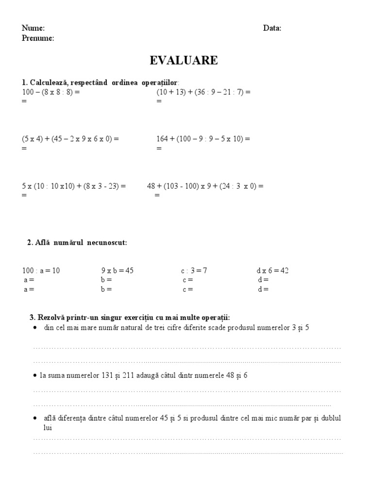 3. Rezolvă printr-un singur exercițiu cu mai multe operații: