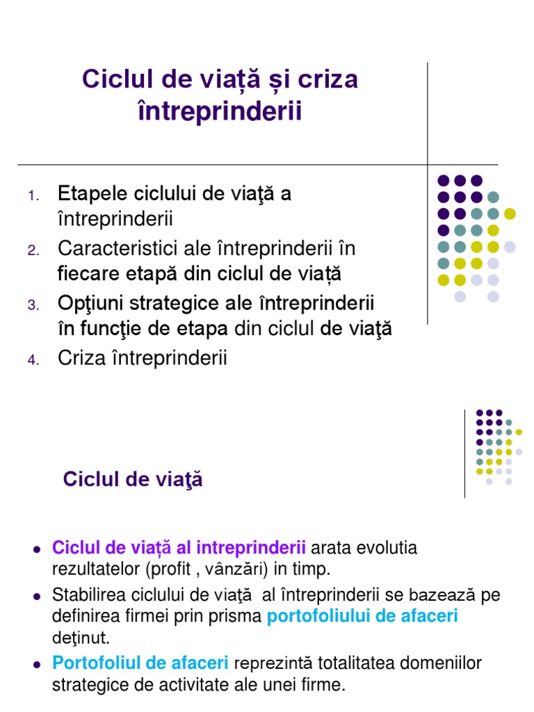 Stabilirea ciclului de viaţă al întreprinderii se bazează pe