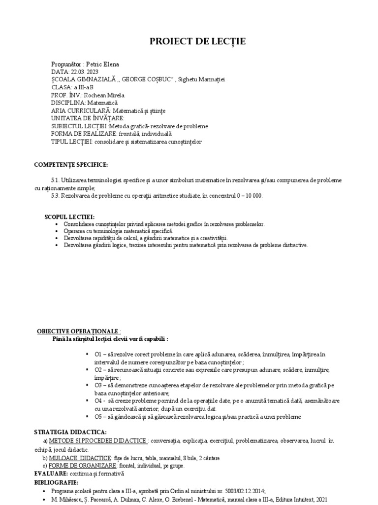 PROIECT DE LECȚIE
