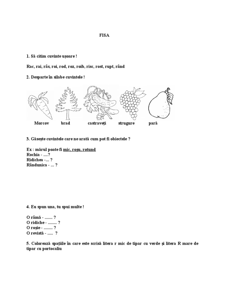 5. Colorează spaţiile în care este scrisă litera r mic de tipar cu verde şi litera R mare de