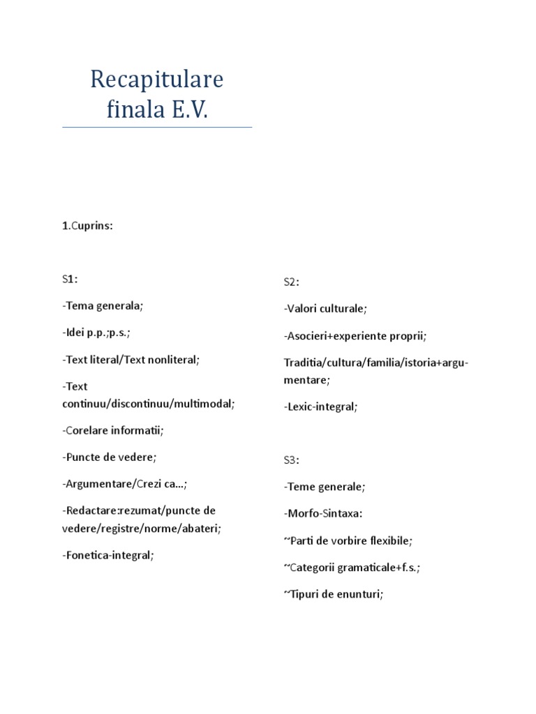 -Plan simplu/dezvoltat; -Tipuri de texte:liric/epic/dramatic;