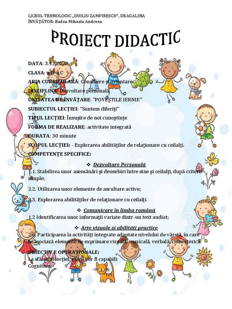 diferiți” și se prezintă elevilor obiectivele